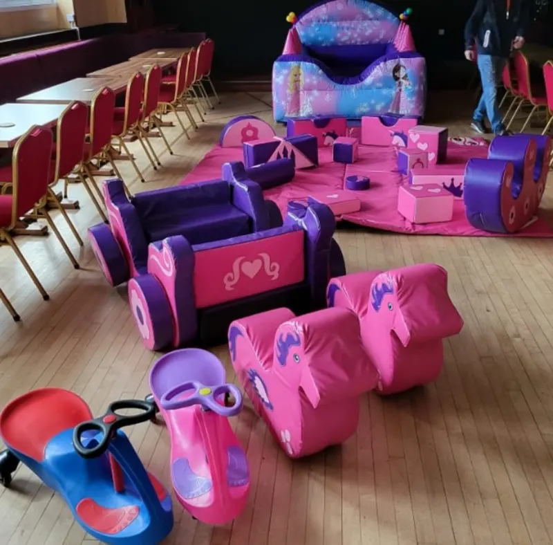 This is an amazing Princess Party Package and has everything you need to have a great Party for your Princess. Our Slide Princess Bouncy Castle comes with a fantastic Air Juggler Ballpool where the balls float on a cushion of air, Princess Softplay Shapes including a Double Princess Rocker and a sit in Princess Carriage with 2 softplay Horses, also included are 2 x Didi Cars and 2 x Happy Hopperz. Contact us today tocbook your Princess Party and be the envy of your Princess's friends.